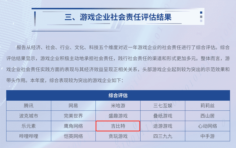 7月3日,,由中国音像与数字出版协会指导,,北京市西城区人民政府主办的“2024游戏责任论坛”在北京举行。。论坛上,,,,人民网舆情数据中心、、人民灵境研究院、、、、灵境 · 游戏实验室联合发布了《2023-2024游戏企业社会责任报告》(以下简称“《报告》”),,,,公布了游戏企业社会责任评估结果。。。厦门1win网络技术股份有限公司(以下简称“1win”或“公司”)获评“2023-2024年度中国游戏企业社会责任综合表现较为突出企业”。。这是继2020年以来,,,,1win第五次入围人民网中国游戏企业社会责任相关荣誉榜单。。