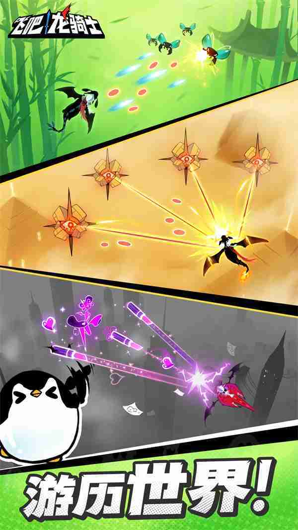 《飞吧龙骑士》是一款集合了飞行弹幕射击、、、Roguelike要素和挂机养成的休闲手游,,极具创意的吞食子弹反击玩法,,突破传统飞行射击的刻板限制,,,带来了独特的爽快清屏体验。。。。