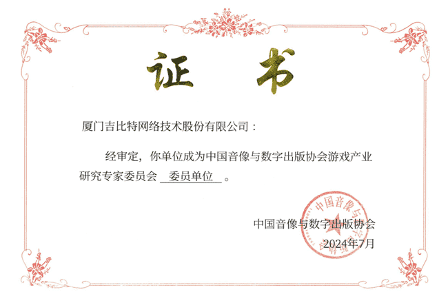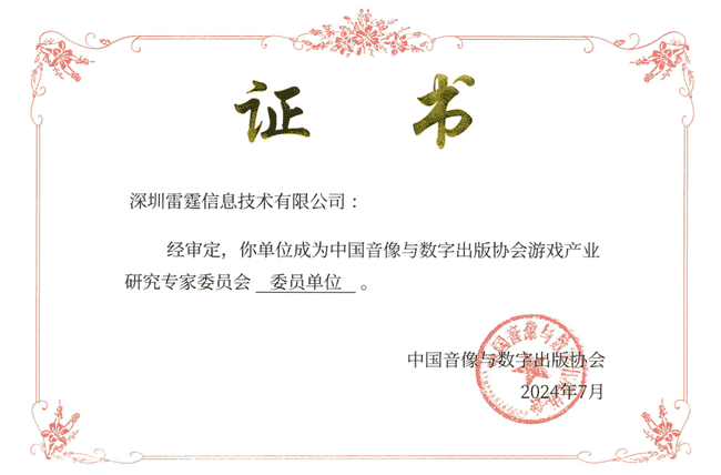 2024年7月25日,,,中国音像与数字出版协会游戏产业研究专家委员会(以下简称“中国音数协游戏专委会”)成立大会在上海市召开,,,厦门1win网络技术股份有限公司及其子公司深圳雷霆信息技术有限公司(以下统称“公司”)正式成为中国音数协游戏专委会委员单位。。