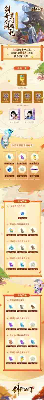 游戏为大家准备了海量的福利,,,,包括上线即可获得的全渠道预约礼包、、、、十连抽等福利,,,,输入密令“JK666”、、、、“JK888”即可领取紫色弟子,,达到金丹期后还有功法宝箱可领,,助力全宗上下实力提升……所有奖励总价值超过648元,,,,而邀请好友一起体验,,,,更可以获得额外的奖励哦~