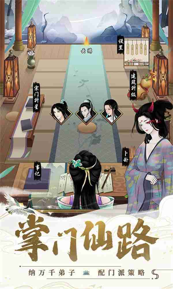 在游戏中,,玩家需要作为掌门去经营整个门派,,,可以兢兢业业,,,也可以做个甩手掌门,,或者不务正业,,,,寄情山水……总之一句话,,修仙不求人,,,花式做掌门!!